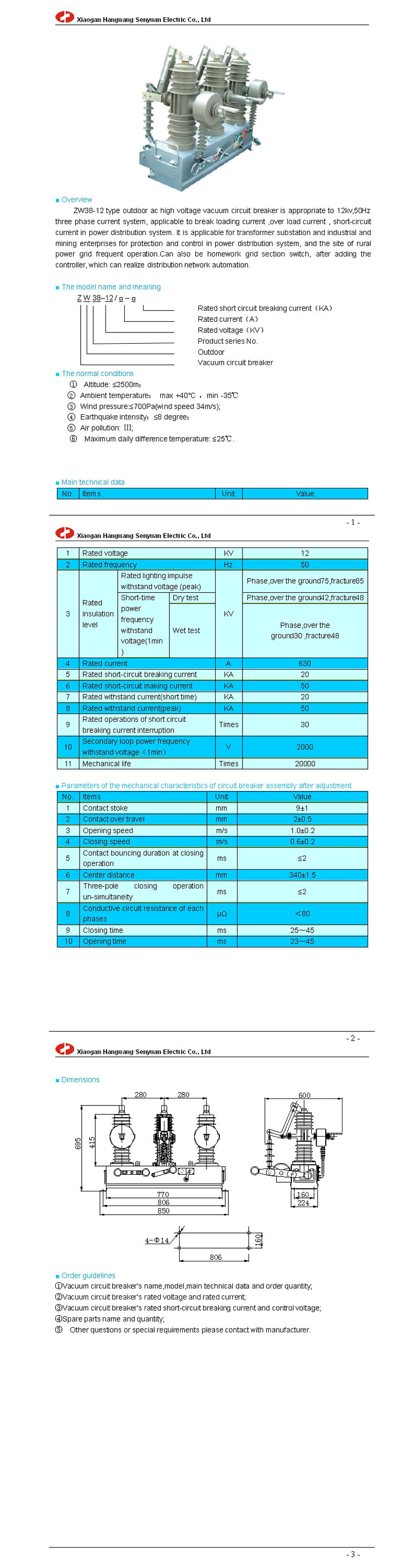 ZW38-12 outdoor ac high voltage vacuum circuit breaker