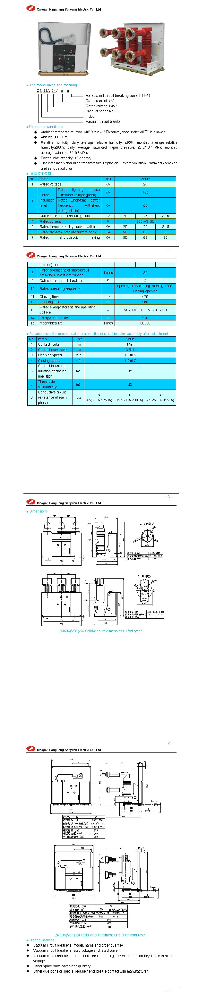 HGP(ZN63A-24) indoor high voltage vacuum circuit breaker (Solid-closure structure)