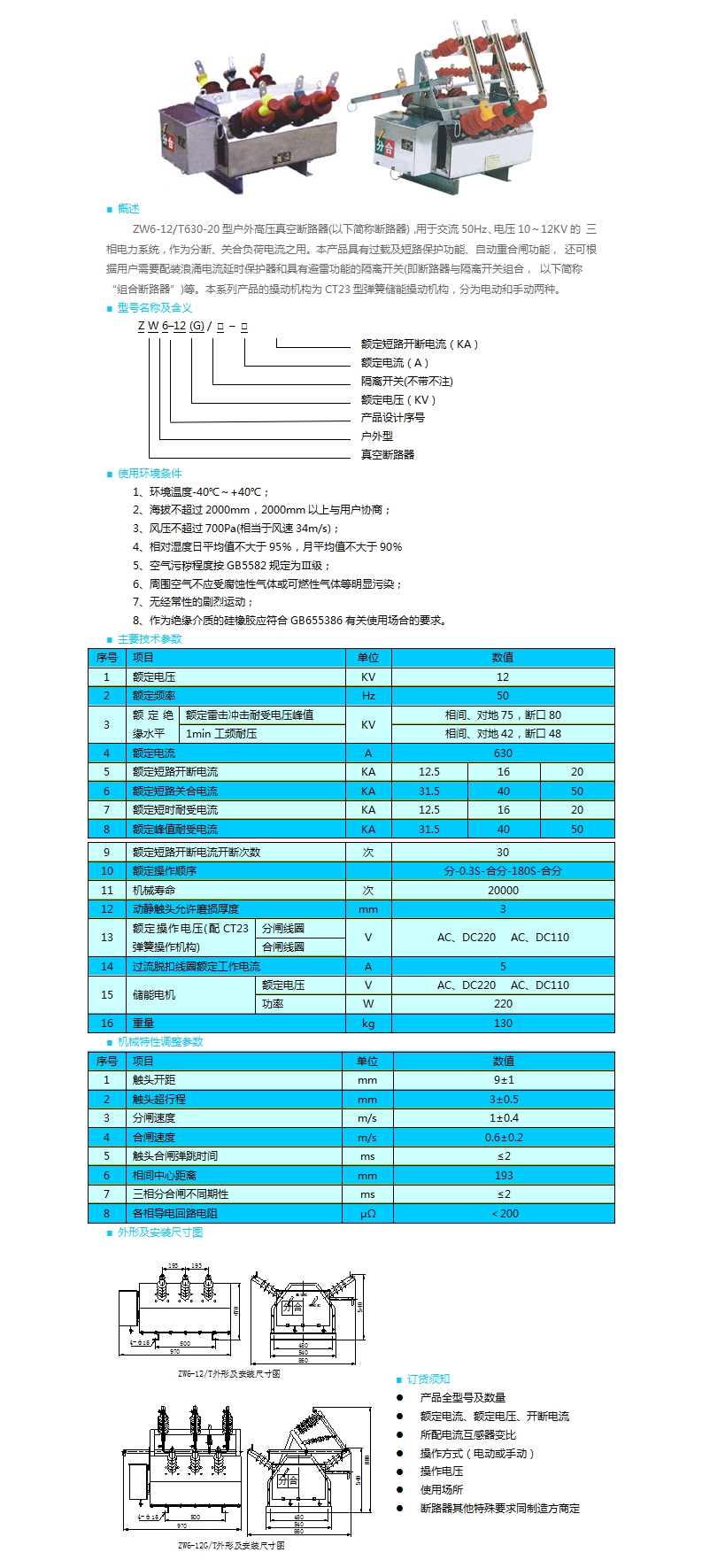 ZW6-12(G)型戶外高壓真空斷路器