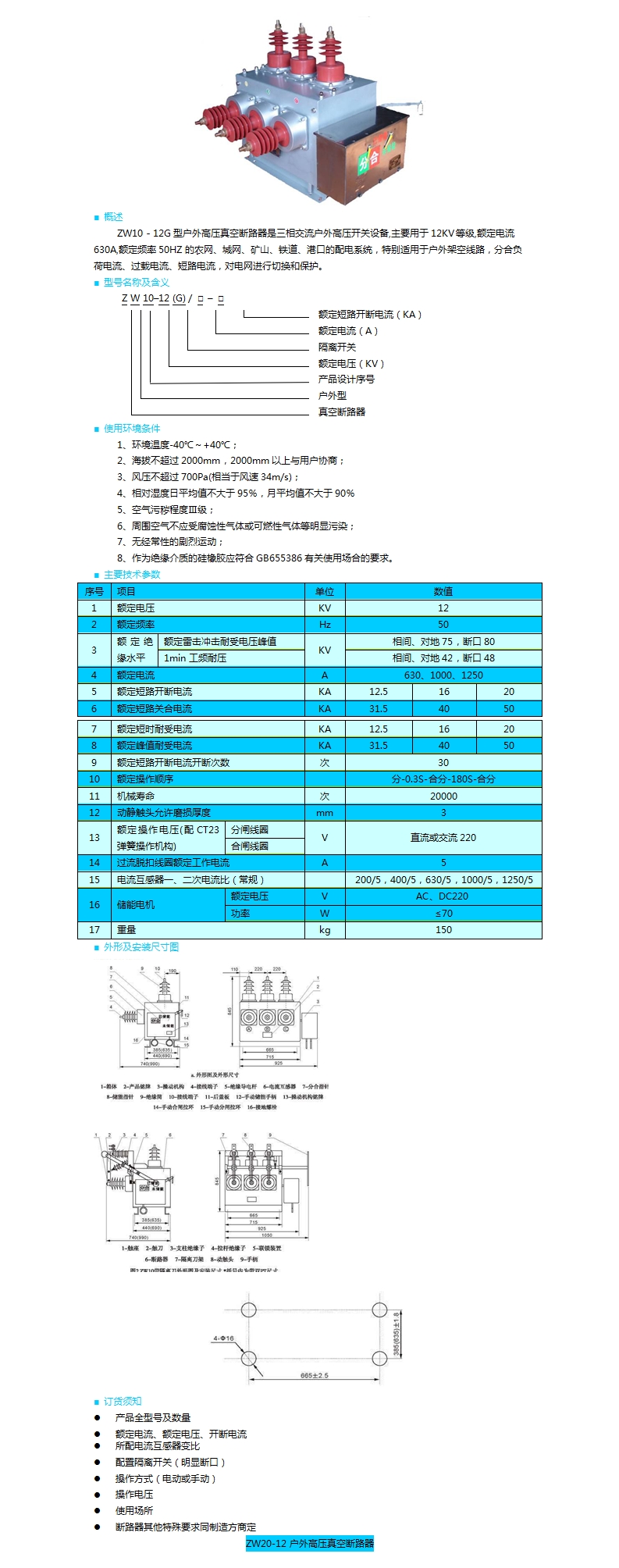 ZW10-12型戶(hù)外高壓真空斷路器